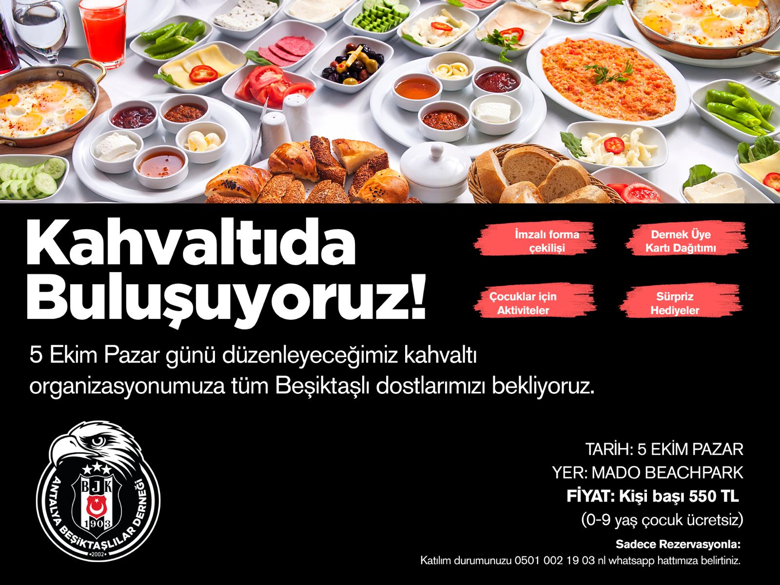5 Ekim Pazar günü düzenleyeceğimiz kahvaltı organizasyonumuza tüm Beşiktaşlı dostlarımızı